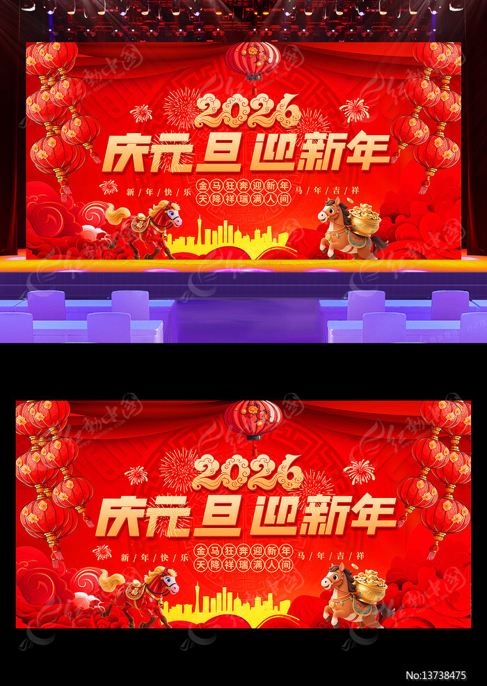红动中国提供原创2026年庆元旦迎新年新春舞台背景展板下载,作品以元旦晚会为主题而设计,可作为2026年元旦,元旦节背景,2026年会,欢度元旦,马年展板等主题图片使用,2026年庆元旦迎新年新春舞台背景展板,编号13738475,格式PSD,尺寸500x250毫米,大小108.45 MB,欢迎会员进行下载。