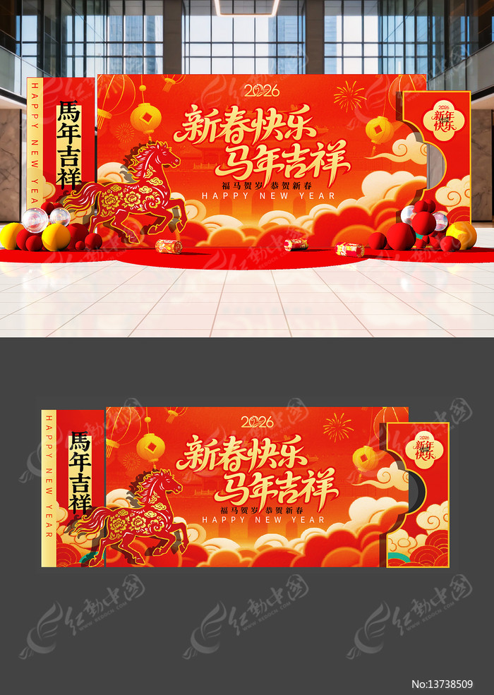 红动中国提供原创原创新年美陈布置下载,作品以新年为主题而设计,可作为春节LED背景,马年拍照框,幼儿园春节,幼儿园环创,春节海报等主题图片使用,原创新年美陈布置,编号13738509,格式AI,尺寸500x200毫米,大小114.35 MB,欢迎会员进行下载。