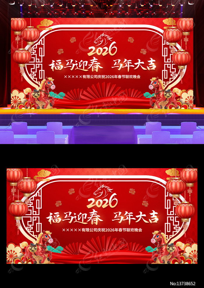 当前位置:设计网站>平面广告>展板>节日节气>2026企业年会马年春节晚会舞台背景展板2026企业年会马年春节晚会舞台背景展板