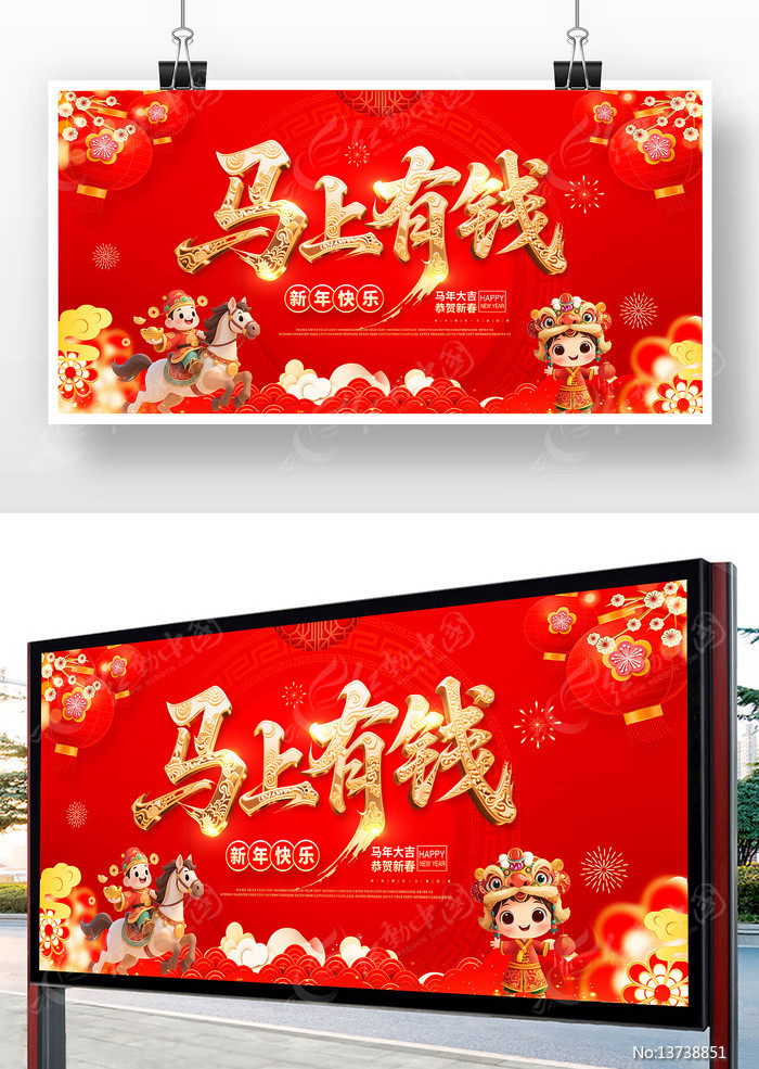 当前位置:设计网站>平面广告>展板>节日节气>2026马上有钱马年新年背景展板2026马上有钱马年新年背景展板