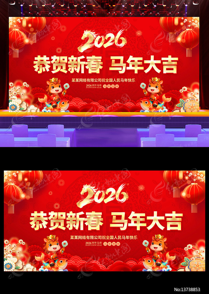 红动中国提供原创2026恭贺新春马年大吉背景展板设计下载,作品以年会背景为主题而设计,可作为跨年晚会,马年背景,马年大吉,马年海报,马年晚会等主题图片使用,2026恭贺新春马年大吉背景展板设计,编号13738853,格式PSD,尺寸1200x600毫米,大小58.15 MB,欢迎会员进行下载。