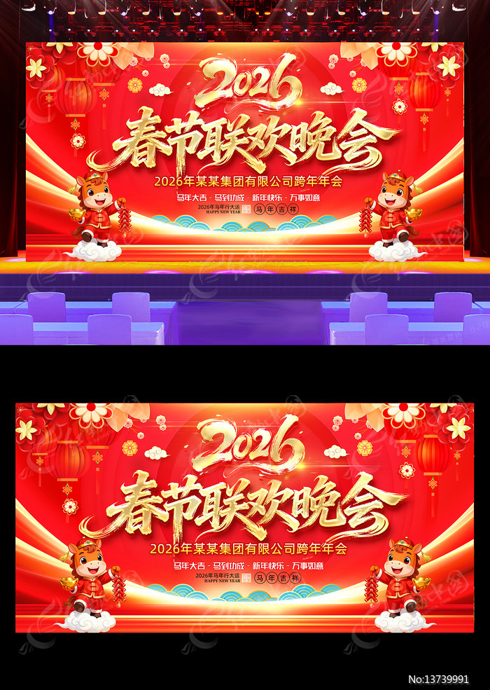 当前位置:设计网站>平面广告>展板>节日节气>2026年马年年会新年春节晚会舞台背景2026年马年年会新年春节晚会舞台背景