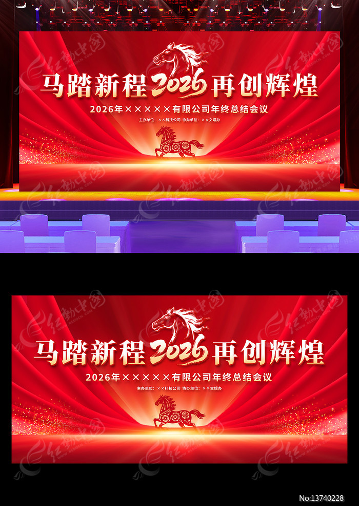 红动中国提供原创2026马年企业年会晚会舞台背景展板下载,作品以年会背景为主题而设计,可作为年会舞台背景,2026年会,颁奖晚会,答谢晚会,公司年会等主题图片使用,2026马年企业年会晚会舞台背景展板,编号13740228,格式PSD,尺寸600x300毫米,大小87.07 MB,欢迎会员进行下载。