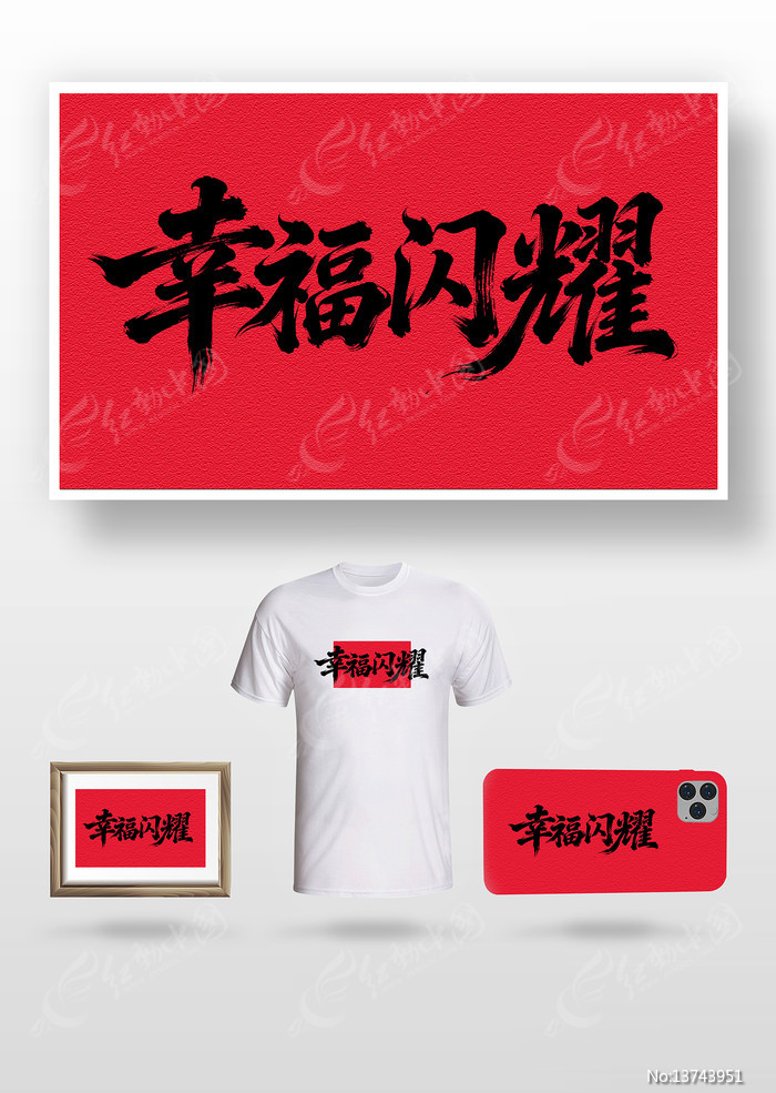 幸福闪耀毛笔字
