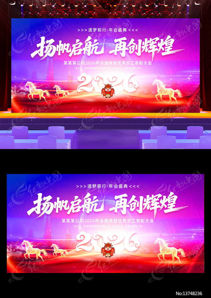 红动中国提供原创再创辉煌2026年马年企业年会舞台背景下载,作品以年会晚会背景为主题而设计,可作为企业晚会舞台背景,团拜会舞台背景,颁奖晚会背景,春节舞台背景,年会晚会背景等主题图片使用,再创辉煌2026年马年企业年会舞台背景,编号13748236,格式PSD,尺寸500x250毫米,大小57.39 MB,欢迎会员进行下载。