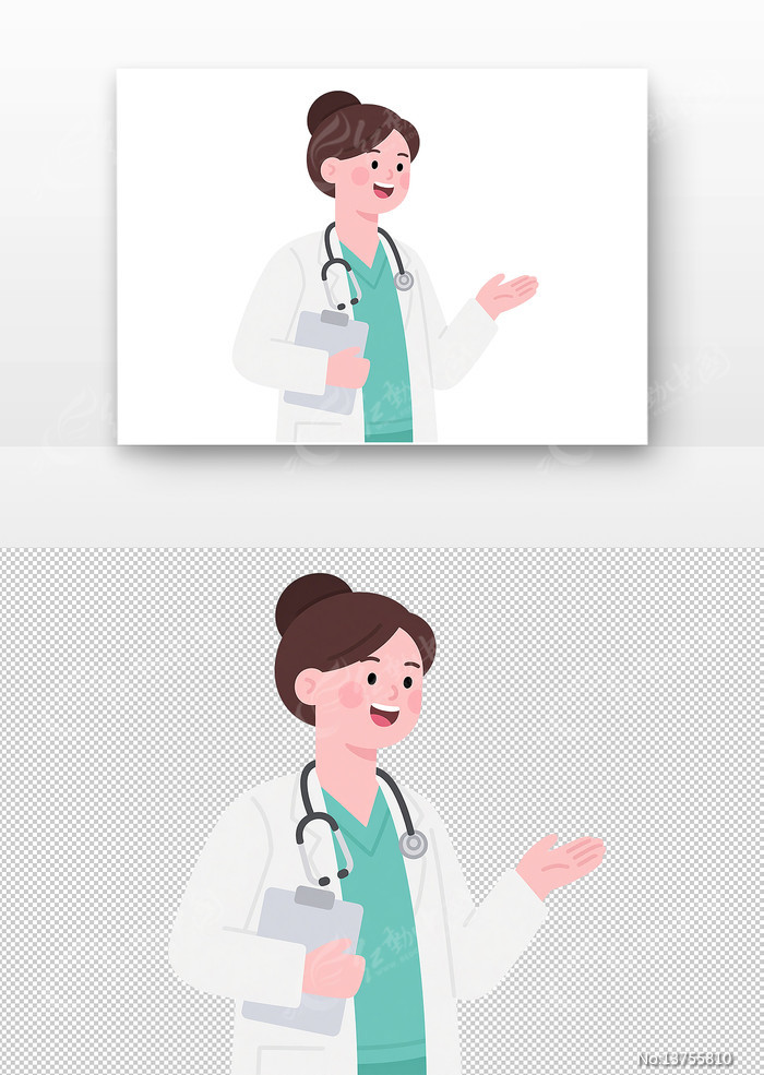 当前位置:素材网站>免抠元素>卡通手绘>插画风格女医生手持病历夹微笑讲解