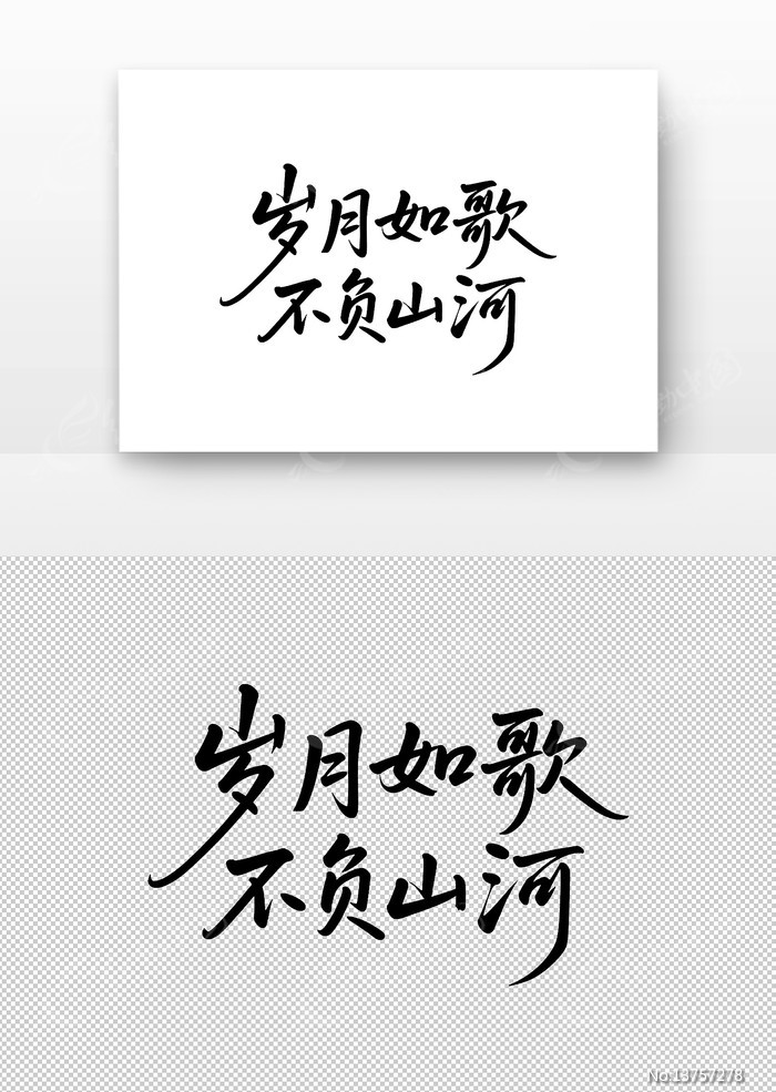当前位置:素材网站>免抠元素>书法字>岁月如歌不负山河书法字