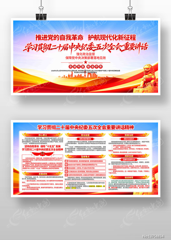红动中国提供原创二十届中央纪委五次全会重要讲话精神展板下载,作品以二十届中央纪委五次全会为主题而设计,可作为二十届中央纪委五次全会精神,二十届中央纪委五次全会,纪委五次全会,五次全会精神,重要讲话精神等主题图片使用,二十届中央纪委五次全会重要讲话精神展板,编号13758834,格式PSD,尺寸600x300毫米,大小71.65 MB,欢迎会员进行下载。