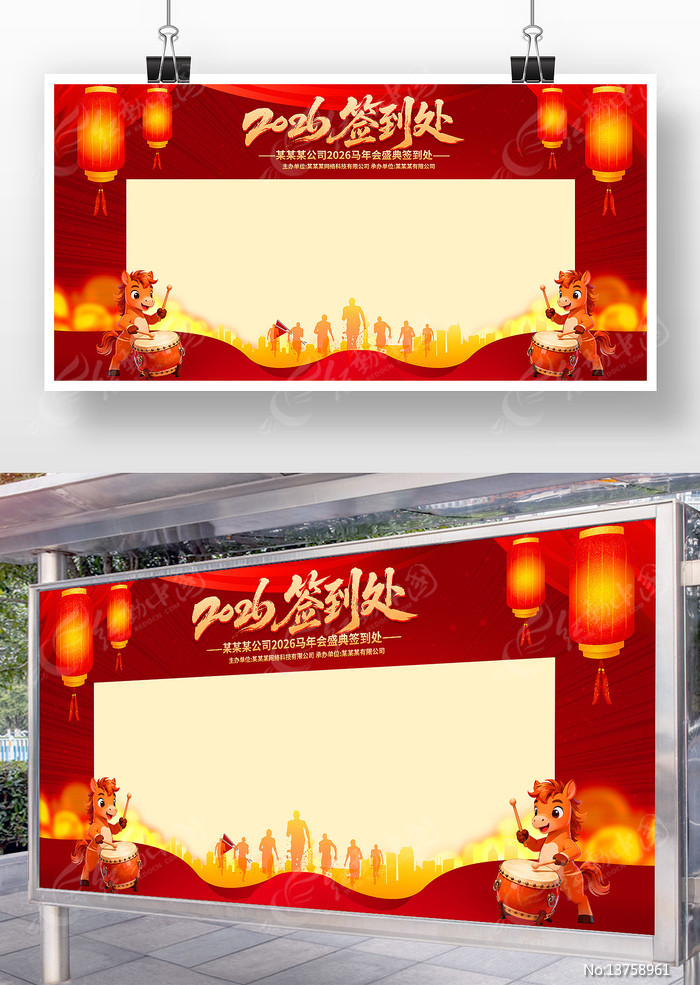 当前位置:设计网站>平面广告>展板>企业文化>2026马年年会签到处签到板背景展板2026马年年会签到处签到板背景展板