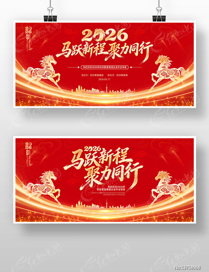 红动中国提供原创红色喜庆2026年公司企业年会舞台背景下载,作品以马年年会背景为主题而设计,可作为2026年会背景,马年活动背景,马年年会背景,马年舞台背景,年会盛典舞台等主题图片使用,红色喜庆2026年公司企业年会舞台背景,编号13758968,格式PSD,尺寸300x600毫米,大小103.04 MB,欢迎会员进行下载。