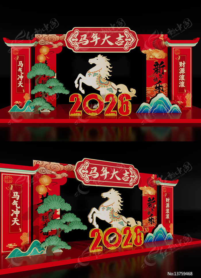 红动中国提供原创2026马年背景墙春节美陈下载,作品以春节户外雕塑为主题而设计,可作为2026年开门红,春节户外雕塑,新年景观雕塑,2026年拱门,红包抽奖墙等主题图片使用,2026马年背景墙春节美陈,编号13759468,格式AI,尺寸297x210毫米,大小6.59 MB,欢迎会员进行下载。
