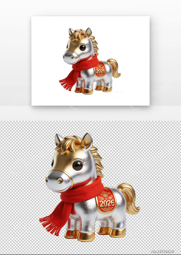 当前位置:素材网站>免抠元素>装饰元素>银白金喜庆金属质感可爱小马戴红围巾