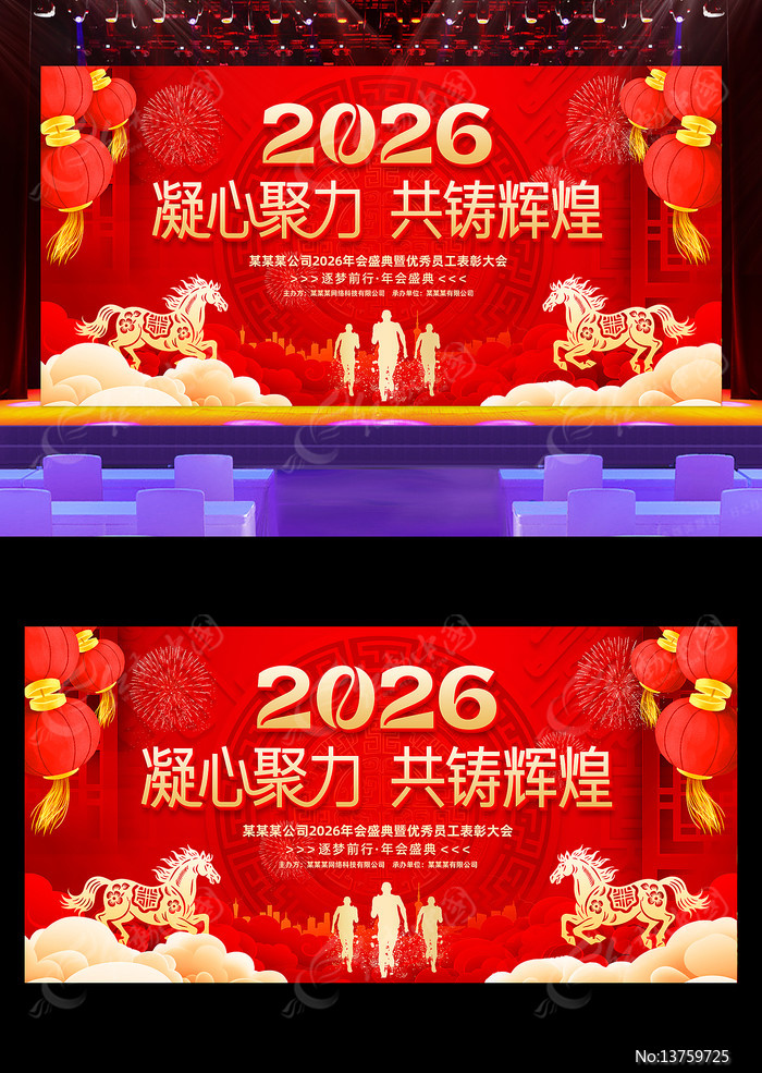 红动中国提供原创红色大气2026马年企业年会晚会舞台背景下载,作品以企业晚会为主题而设计,可作为企业晚会舞台背景,团拜会舞台背景,颁奖晚会背景,春节舞台背景,年会晚会背景等主题图片使用,红色大气2026马年企业年会晚会舞台背景,编号13759725,格式PSD,尺寸500x250毫米,大小57.83 MB,欢迎会员进行下载。