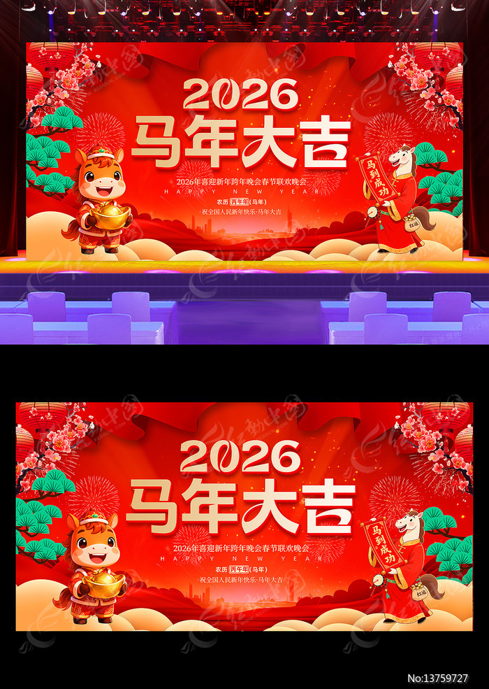 当前位置:设计网站>平面广告>展板>节日节气>2026马年大吉企业年会晚会舞台背景2026马年大吉企业年会晚会舞台背景