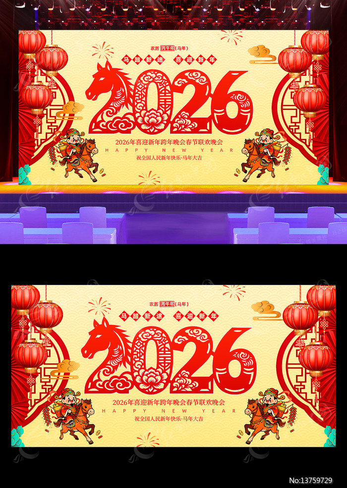 红动中国提供原创2026马年年会新年晚会舞台背景展板下载,作品以企业晚会为主题而设计,可作为企业晚会舞台背景,团拜会舞台背景,颁奖晚会背景,春节舞台背景,年会晚会背景等主题图片使用,2026马年年会新年晚会舞台背景展板,编号13759729,格式PSD,尺寸500x250毫米,大小33.45 MB,欢迎会员进行下载。