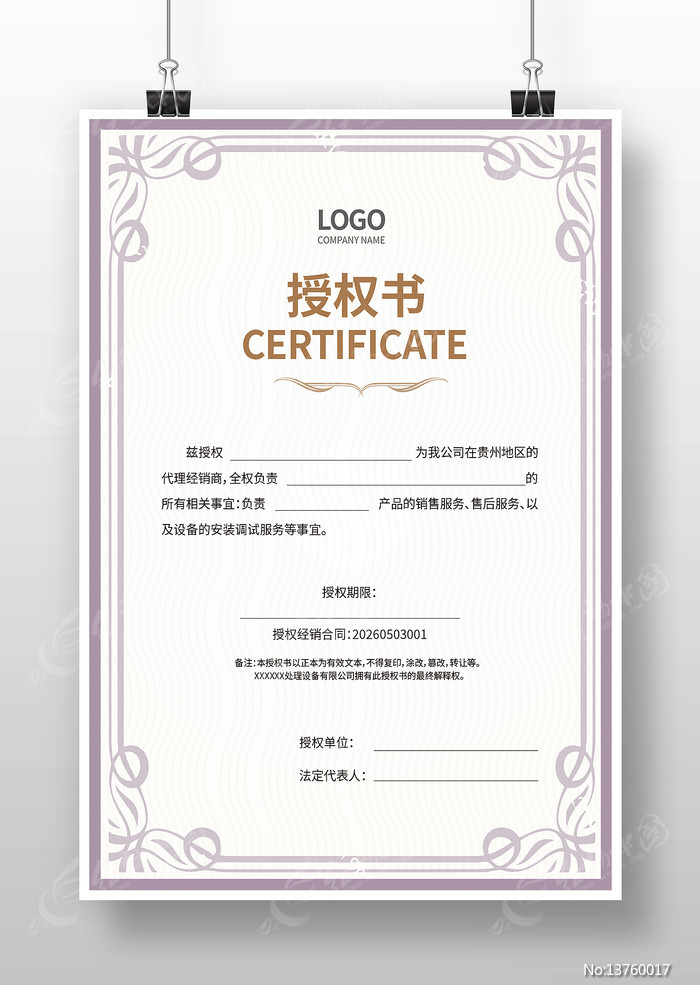 代理授权书图片推荐