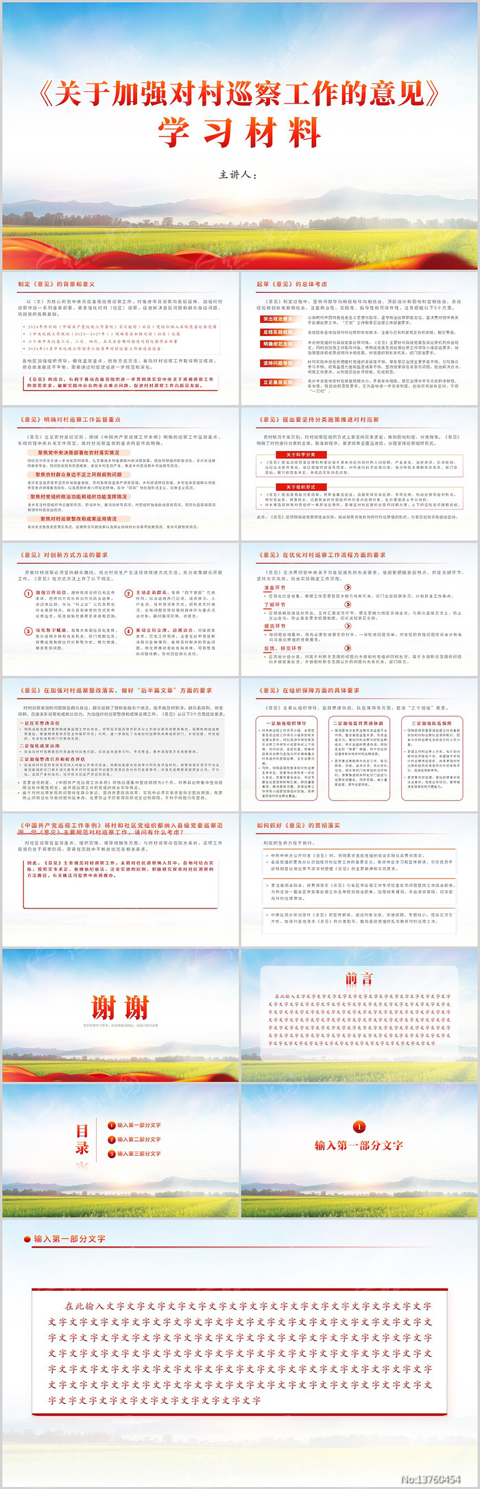 红动中国提供原创关于加强对村巡察工作的意见学习PPT下载,作品以加强对村巡察工作为主题而设计,可作为关于加强对村巡察工作的意见,加强对村巡察工作,乡镇党建工作总结,对村巡察工作,乡镇工作总结等主题PPT使用,关于加强对村巡察工作的意见学习PPT编号13760454,格式pptx,大小4.01 MB,欢迎会员进行下载。