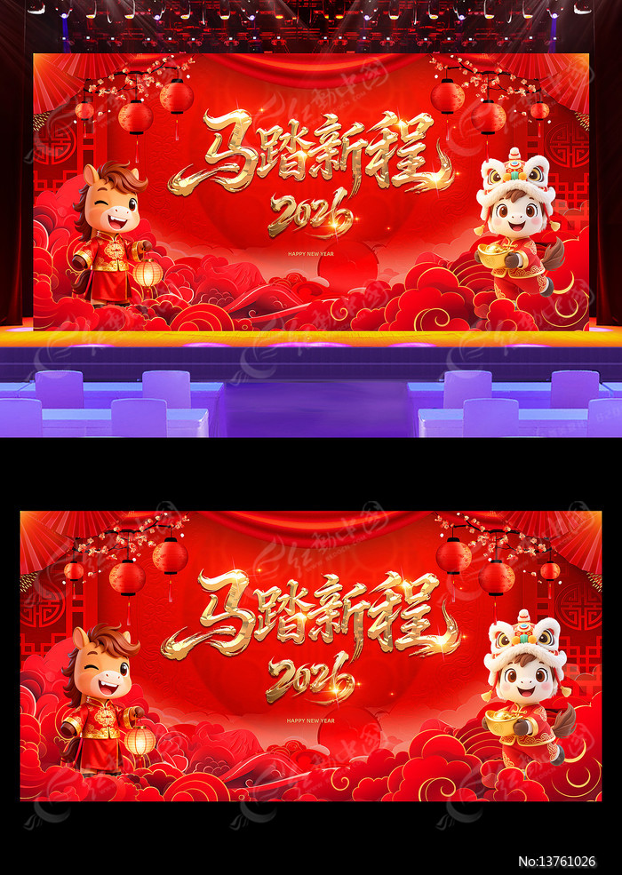 当前位置:设计网站>平面广告>展板>节日节气>2026年喜庆马年舞台展板背景2026年喜庆马年舞台展板背景