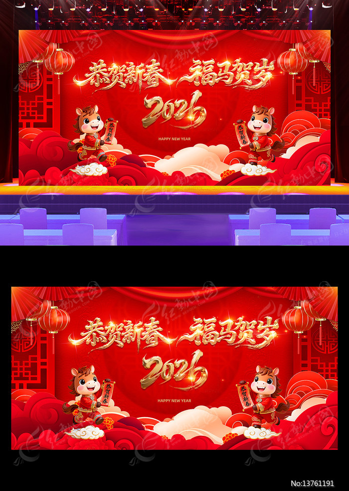 当前位置:设计网站>平面广告>展板>节日节气>2026年喜庆马年福马贺岁舞台展板背景2026年喜庆马年福马贺岁舞台展板背景