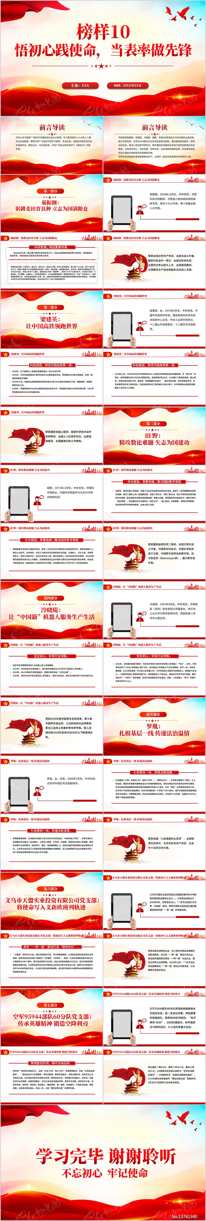 红动中国提供原创榜样10PPT悟初心践使命当表率做先锋下载,作品以党课为主题而设计,可作为党课ppt课件,党员ppt,微党课ppt,合格党员,先进事迹等主题PPT使用,榜样10PPT悟初心践使命当表率做先锋编号13761340,格式pptx,大小51.81 MB,欢迎会员进行下载。