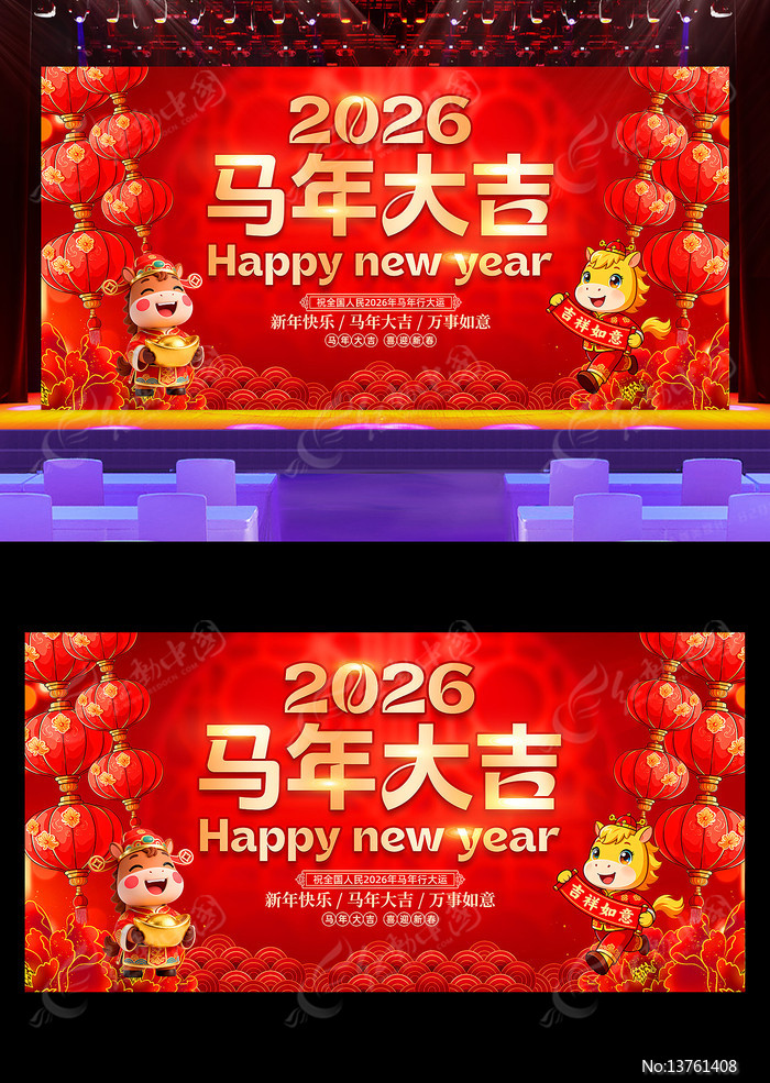 当前位置:设计网站>平面广告>展板>节日节气>2026年会马年春节晚会新年新春背景展板2026年会马年春节晚会新年新春背景展板