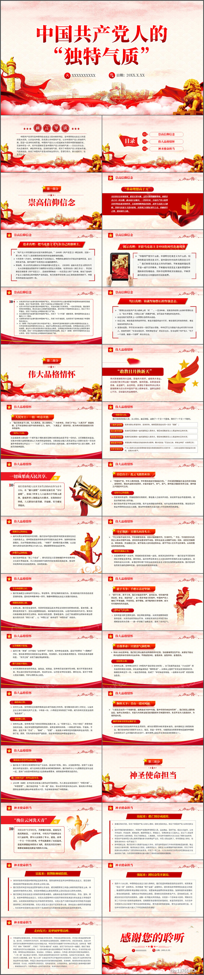 红动中国提供原创中国共产党人的独特气质党课PPT下载,作品以中国共产党人的独特气质为主题而设计,可作为中国共产党人的独特气质党课,中国共产党人的独特气质,崇高信仰信念,神圣使命担当,伟大品格情怀等主题PPT使用,中国共产党人的独特气质党课PPT编号13761482,格式pptx,大小25.13 MB,欢迎会员进行下载。