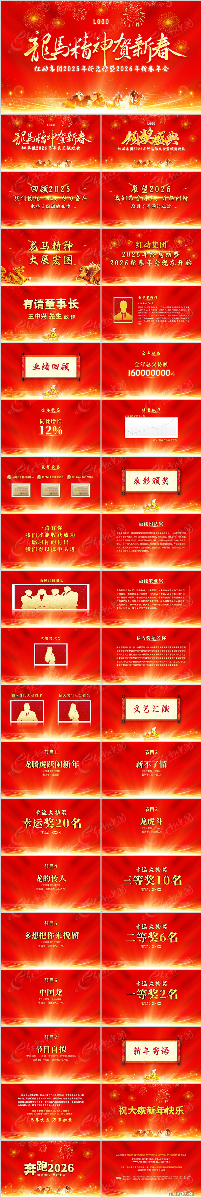红动中国提供原创2026新春年会马年年会马年活动PPT下载,作品以2026年会为主题而设计,可作为2026年会PPT,马年会议PPT,马年活动PPT,2026年会,颁奖盛典等主题PPT使用,2026新春年会马年年会马年活动PPT编号13763536,格式pptx,大小49.93 MB,欢迎会员进行下载。