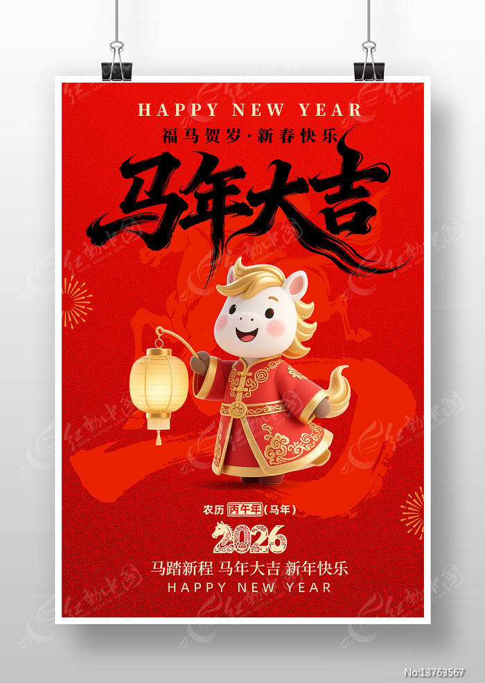 红动中国提供原创2026马年新春新年海报下载,作品以马年新年为主题而设计,可作为马年新年海报,2026年新春,2026新春,2026元旦,春节海报等主题图片使用,2026马年新春新年海报,编号13763567,格式PSD,尺寸300x450毫米,大小29.62 MB,欢迎会员进行下载。