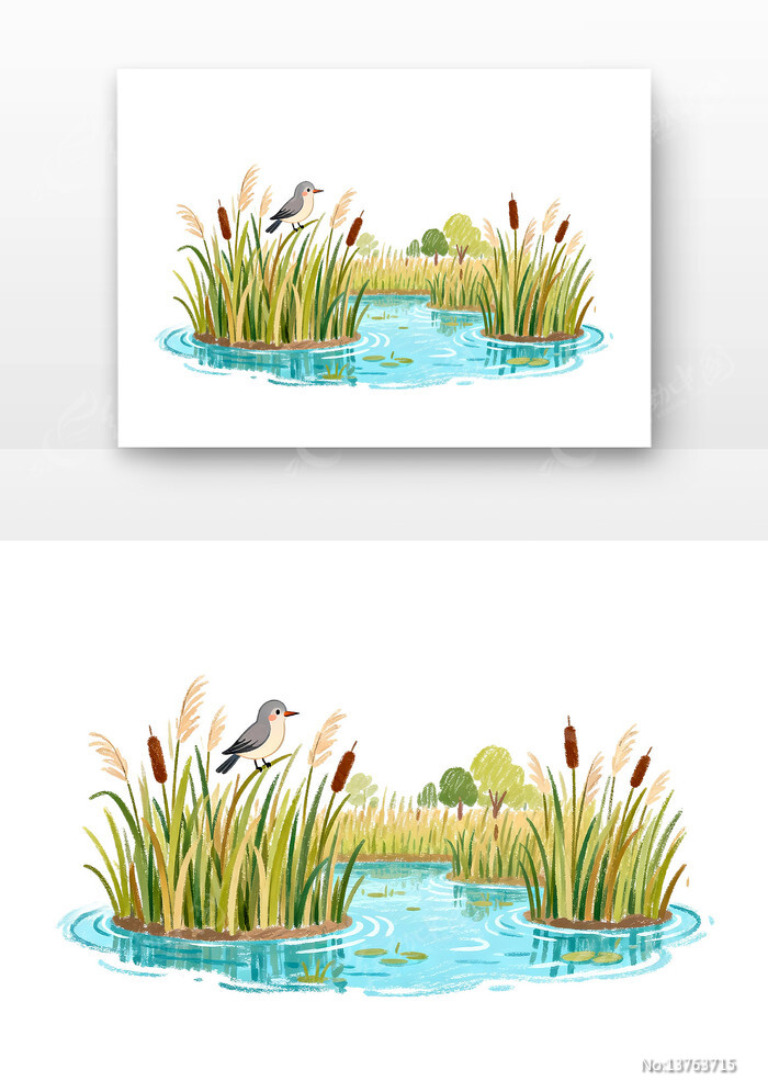 当前位置:素材网站>免抠元素>卡通手绘>湿地生态芦苇荡飞鸟水景卡通