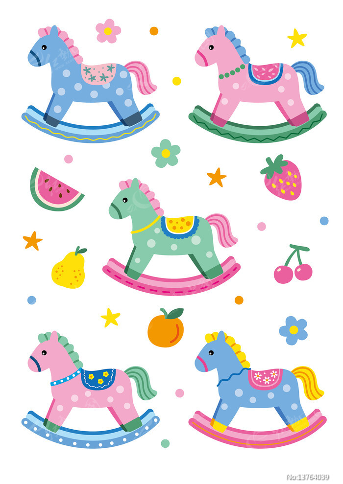当前位置:图片网站>插画>印花图案>卡通风手绘风摇摇木马水果手账贴纸印花插画