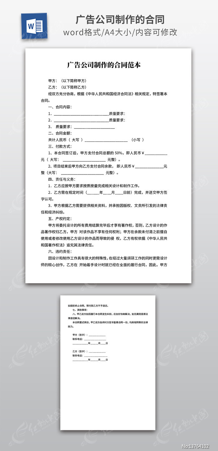 红动中国提供原创广告公司制作的合同下载,该作品还可作为广告公司制作的合同等范文模板使用,广告公司制作的合同编号13764102,大小,欢迎会员进行下载。