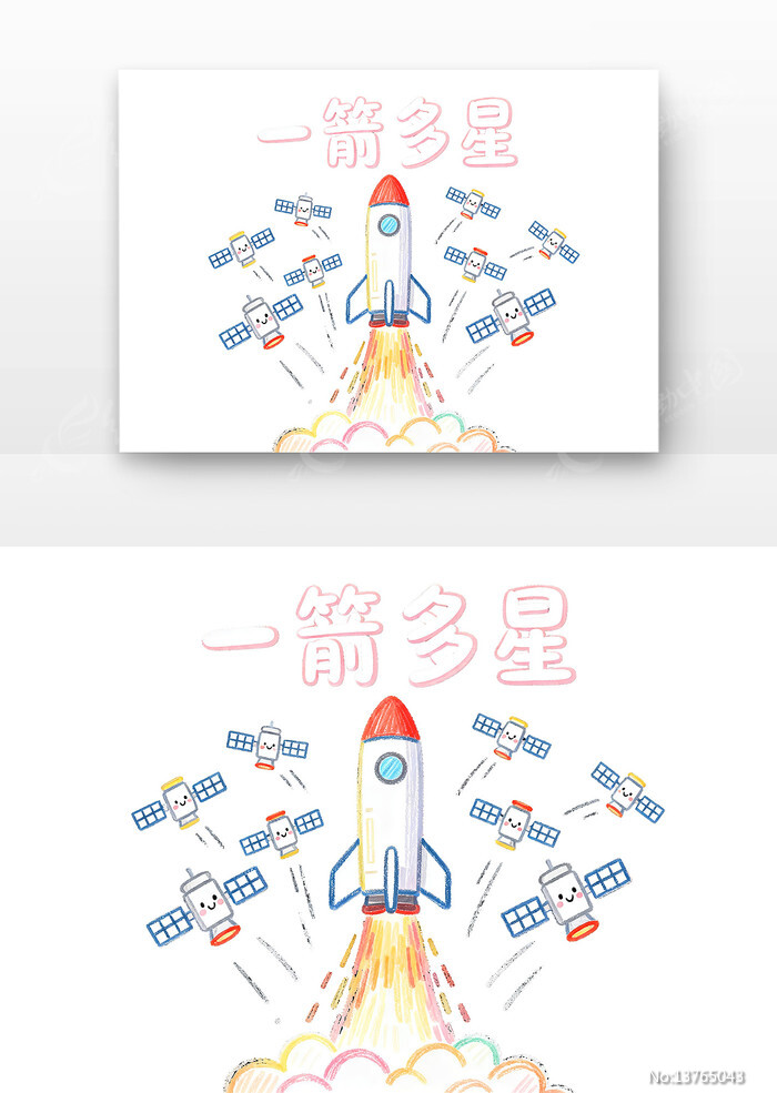 当前位置:素材网站>免抠元素>卡通手绘>一箭多星中国航天日卡通