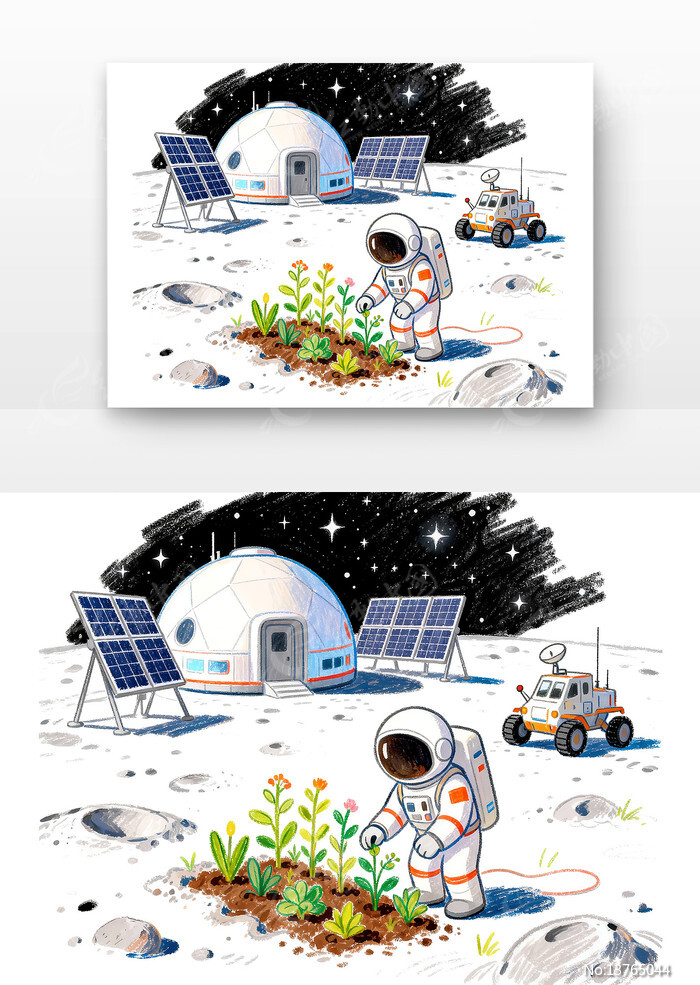当前位置:素材网站>免抠元素>卡通手绘>月球基地想象中国航天日卡通