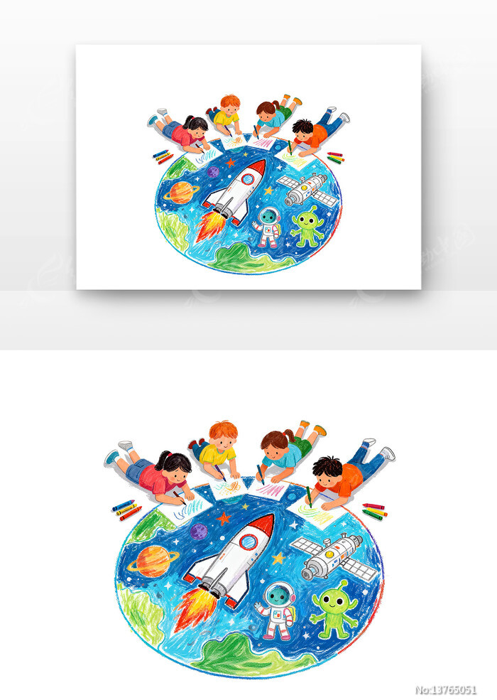 当前位置:素材网站>免抠元素>卡通手绘>航天主题绘画中国航天日卡通