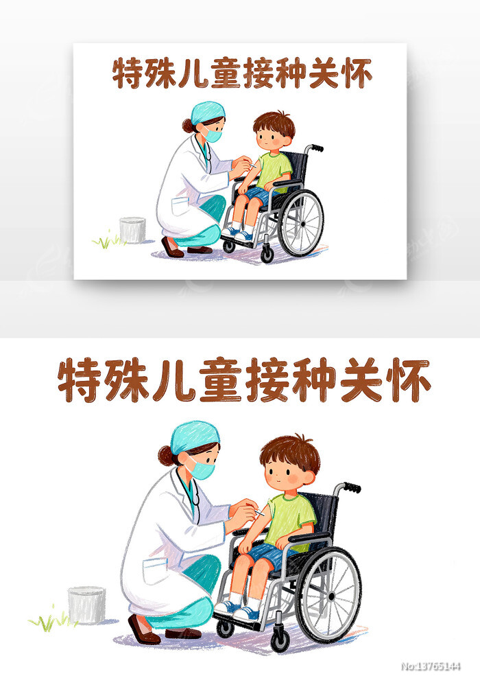 当前位置:素材网站>免抠元素>卡通手绘>特殊儿童接种关怀儿童预防接种卡通