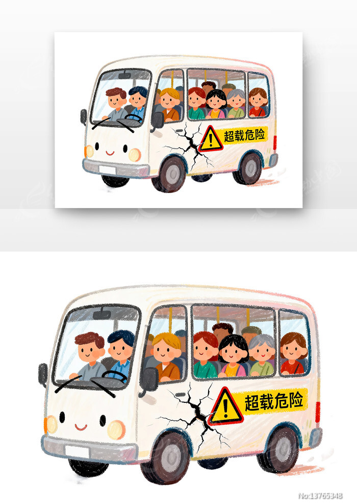 当前位置:素材网站>免抠元素>卡通手绘>不坐超员车交通安全卡通