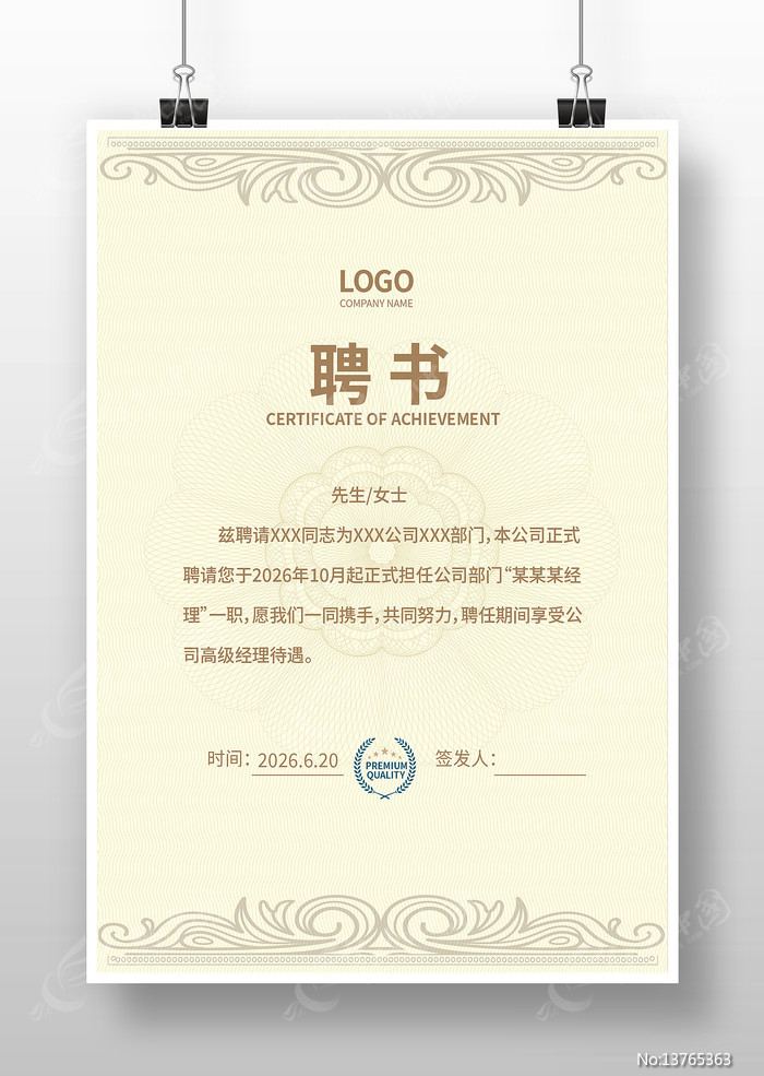当前位置:设计网站>平面广告>名片|卡券>证书>聘书聘书
