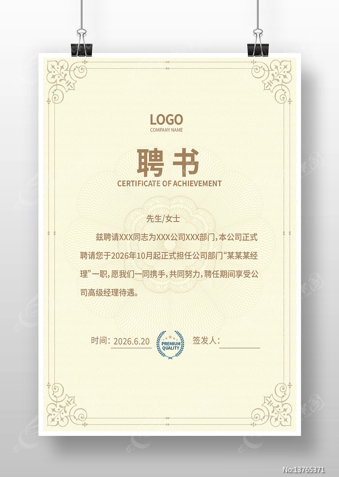 红动中国提供原创任命书模版下载,作品以企业任为主题而设计,可作为优秀人才聘书,优秀员工聘书,企业聘请书,企业聘用书,企业任聘书等主题图片使用,任命书模版,编号13765371,格式AI,尺寸300x450毫米,大小3.17 MB,欢迎会员进行下载。