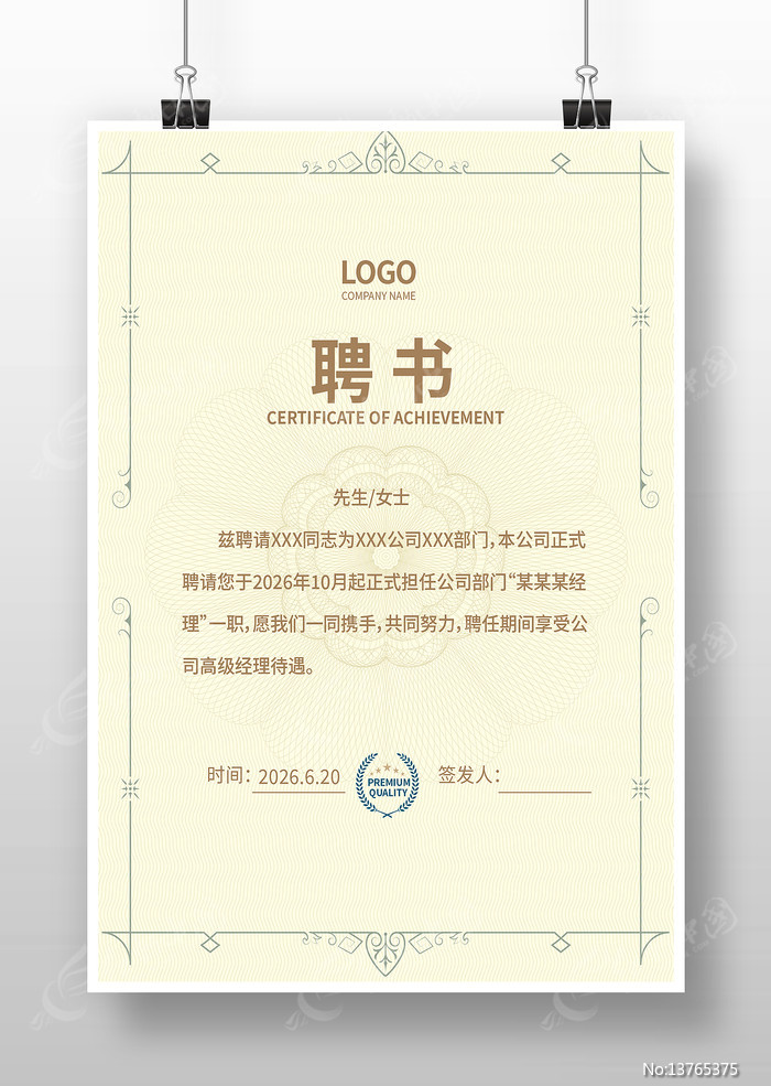 红动中国提供原创聘请书下载,作品以企业任为主题而设计,可作为优秀人才聘书,优秀员工聘书,企业聘请书,企业聘用书,企业任聘书等主题图片使用,聘请书,编号13765375,格式AI,尺寸300x450毫米,大小3.16 MB,欢迎会员进行下载。