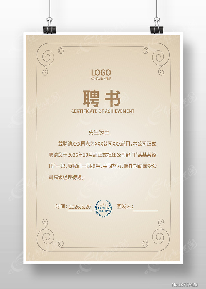 红动中国提供原创聘用书模版下载,作品以企业任为主题而设计,可作为优秀人才聘书,优秀员工聘书,公司聘请书,企业聘请书,企业聘用书等主题图片使用,聘用书模版,编号13767428,格式AI,尺寸300x450毫米,大小1.8 MB,欢迎会员进行下载。