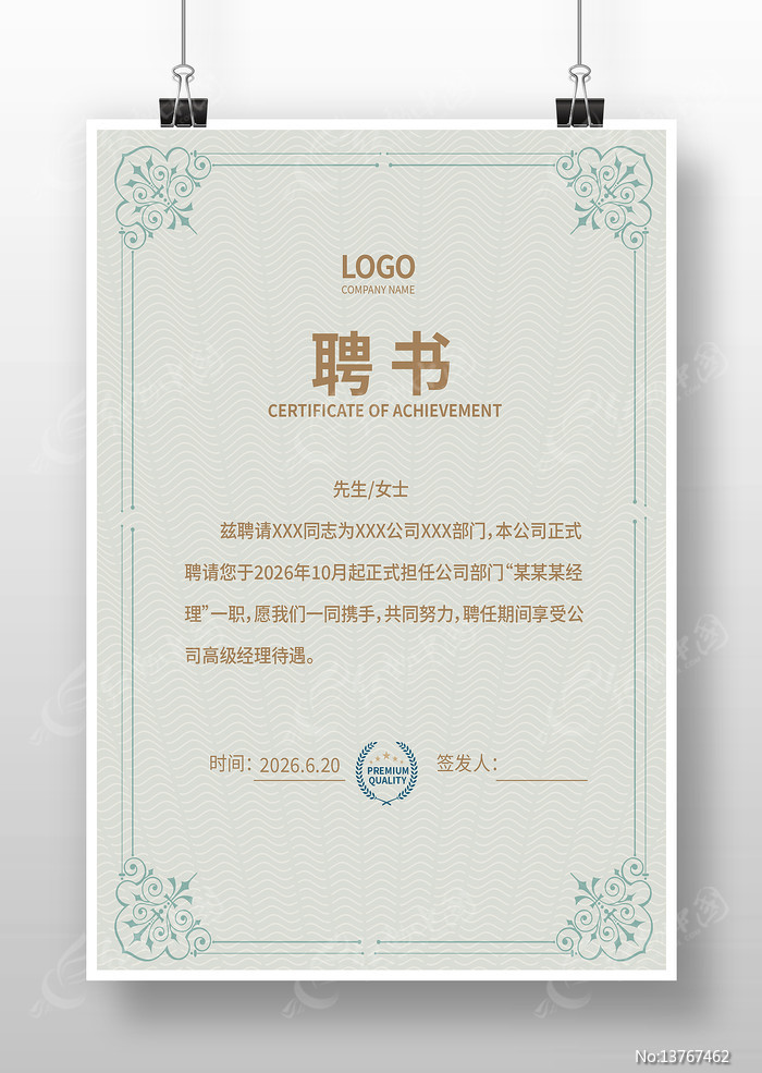 红动中国提供原创聘用书下载,作品以企业任为主题而设计,可作为优秀人才聘书,优秀员工聘书,公司聘请书,企业聘请书,企业聘用书等主题图片使用,聘用书,编号13767462,格式AI,尺寸300x450毫米,大小1.43 MB,欢迎会员进行下载。