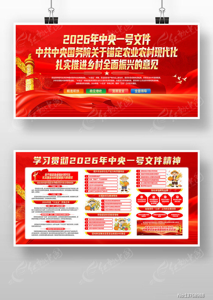 红动中国提供原创深入学习贯彻2026年中央一号文件展板下载,作品以中央1号文件为主题而设计,可作为解读一号文件,深化农村改革,图解一号文件,乡村全面振兴,一号文件解读等主题图片使用,深入学习贯彻2026年中央一号文件展板,编号13768988,格式PSD,尺寸300x600毫米,大小90.29 MB,欢迎会员进行下载。