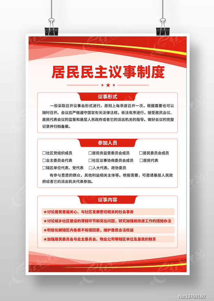 红动中国提供原创乡社区民主议事制度板下载,作品以居民民主议事为主题而设计,可作为乡社区民主议事制度板,居民民主议事制度,民主议事制度牌,民主议事制度,党建制度牌等主题图片使用,乡社区民主议事制度板,编号13769160,格式CDR,尺寸600x400毫米,大小1.05 MB,欢迎会员进行下载。