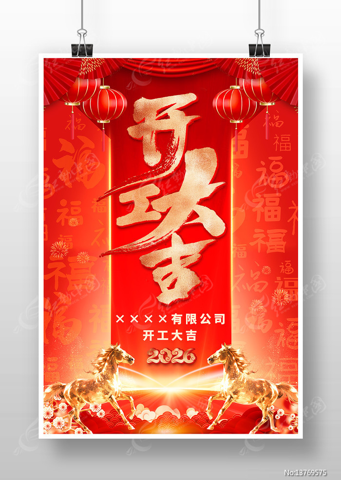 红动中国提供原创红色大气2026年企业开工大吉海报设计下载,作品以2026年开工大吉为主题而设计,可作为2026年开工大吉,公司开工大吉,开工大吉海报,马年开工大吉,开门红背景等主题图片使用,红色大气2026年企业开工大吉海报设计,编号13769575,格式PSD,尺寸400x600毫米,大小149.51 MB,欢迎会员进行下载。