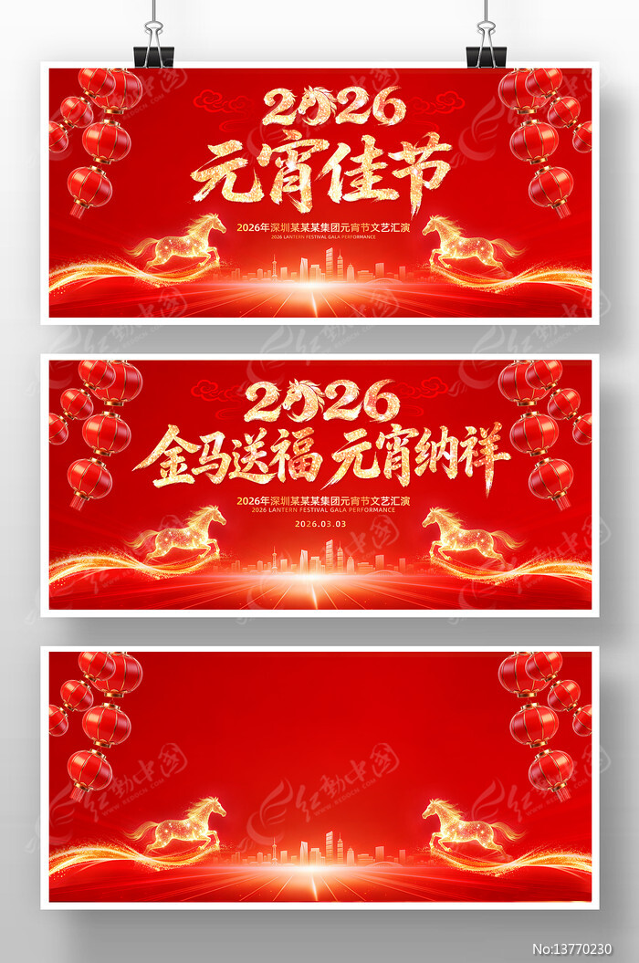 红动中国提供原创红色喜庆2026年元宵节活动背景展板设计下载,作品以元宵为主题而设计,可作为2026元宵背景,马年元宵背景,马年元宵晚会,马年元宵舞台,元宵灯会背景等主题图片使用,红色喜庆2026年元宵节活动背景展板设计,编号13770230,格式PSD,尺寸300x650毫米,大小149.79 MB,欢迎会员进行下载。