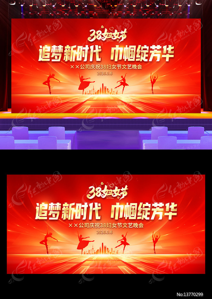 当前位置:设计网站>平面广告>展板>节日节气>红色大气38妇女节晚会舞台背景展板红色大气38妇女节晚会舞台背景展板