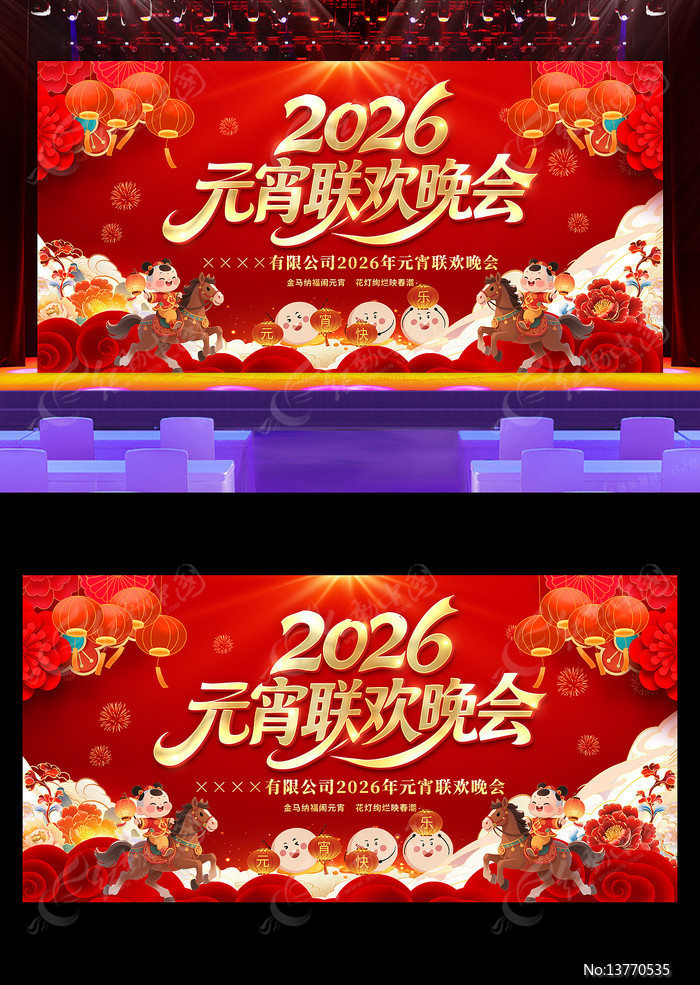 红动中国提供原创2026年马年元宵联欢晚会舞台背景展板下载,作品以元宵为主题而设计,可作为2026元宵节,马年元宵节,元宵节背景,元宵节海报,元宵节晚会等主题图片使用,2026年马年元宵联欢晚会舞台背景展板,编号13770535,格式PSD,尺寸600x300毫米,大小94.64 MB,欢迎会员进行下载。