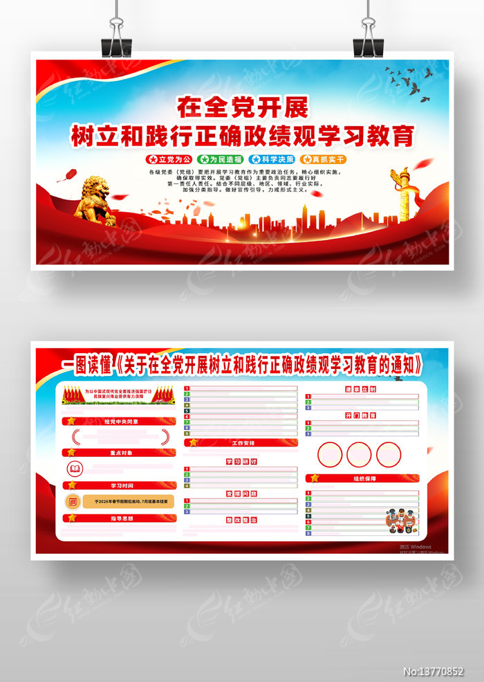 红动中国提供原创全党开展树立和践行正确政绩观学习教育下载,作品以2026年主题教育为主题而设计,可作为践行正确政绩观学习教育,2026年主题教育,全党主题教育,2026年,的通知等主题图片使用,全党开展树立和践行正确政绩观学习教育,编号13770852,格式PSD,尺寸600x300毫米,大小124.35 MB,欢迎会员进行下载。