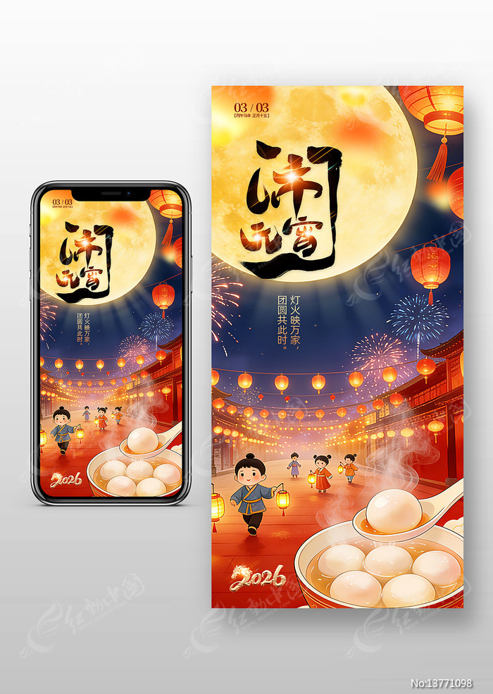 红动中国提供原创2026马年元宵节海报正月十五元宵节海报下载,作品以元宵节背景为主题而设计,可作为2026闹元宵,元宵节背景,元宵节促销,元宵节海报,元宵节宣传等主题图片使用,2026马年元宵节海报正月十五元宵节海报,编号13771098,格式PSD,尺寸440x950毫米,大小29.09 MB,欢迎会员进行下载。
