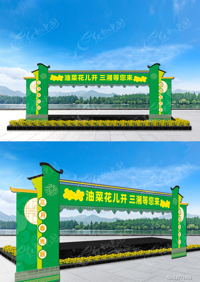 当前位置:设计网站>平面广告>陈列装饰>拱门地贴>油菜花节龙门架油菜花节龙门架
